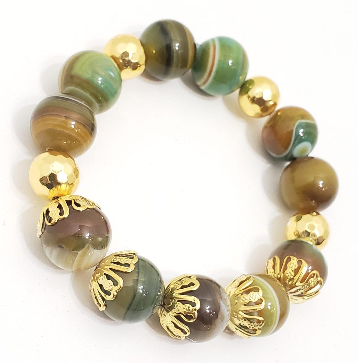 16″ Agate semi precious stone gold charm stackable bracelet.