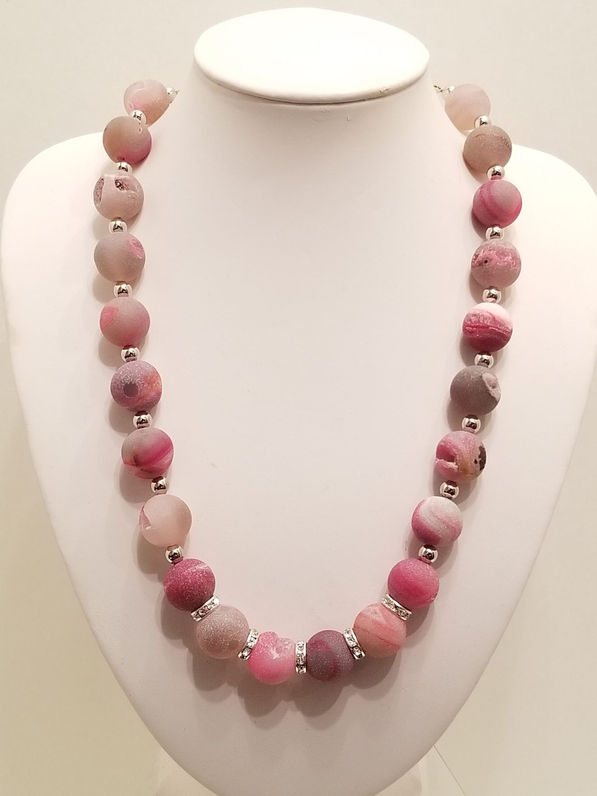 Druzy agate Pink stone necklace 14″