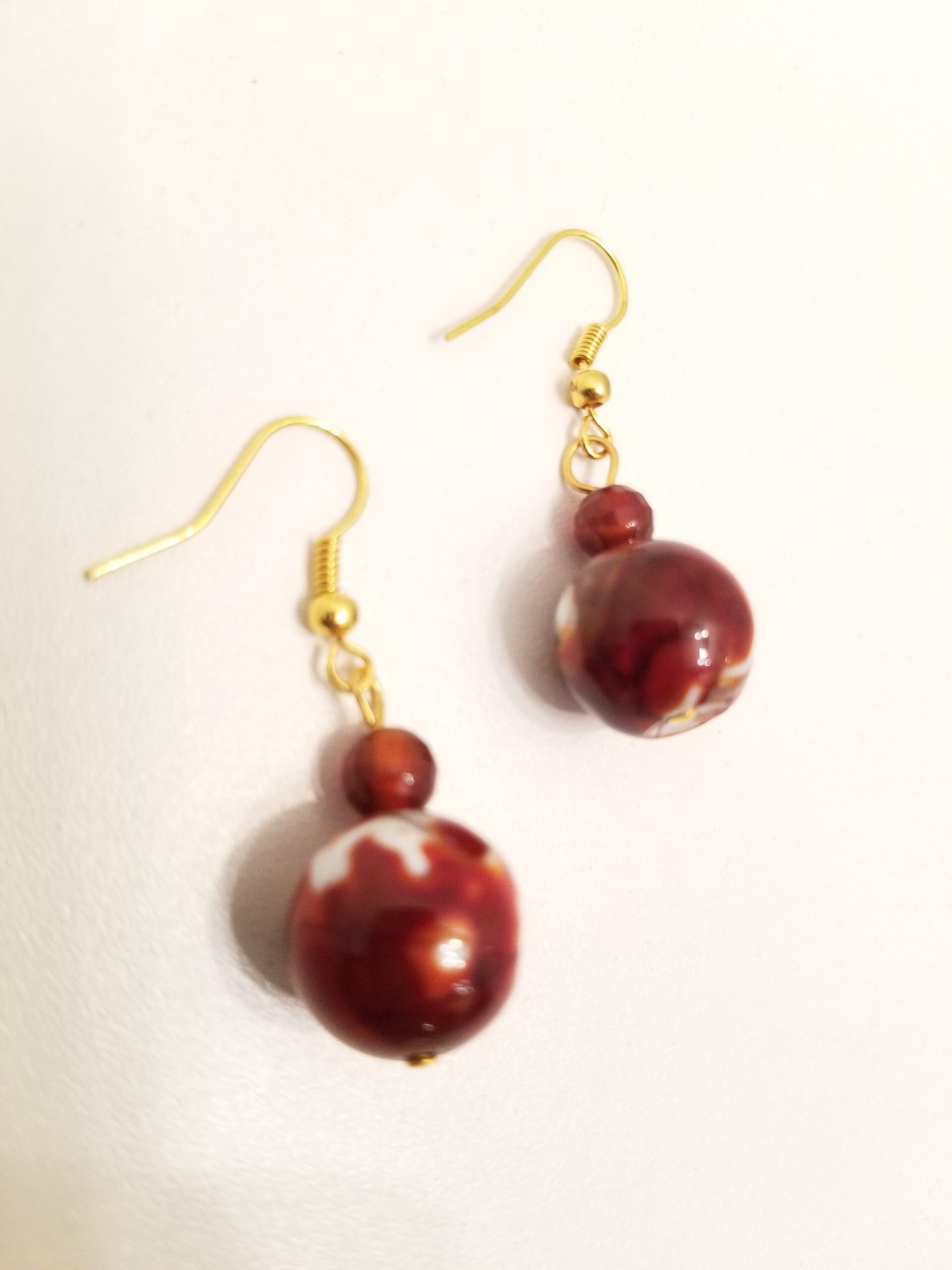 Fire brown scale agate silver plated earrings.