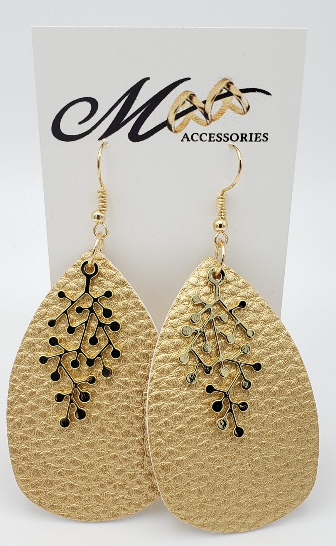 Gold pleather with gold metal decal and hooks 2.5″.