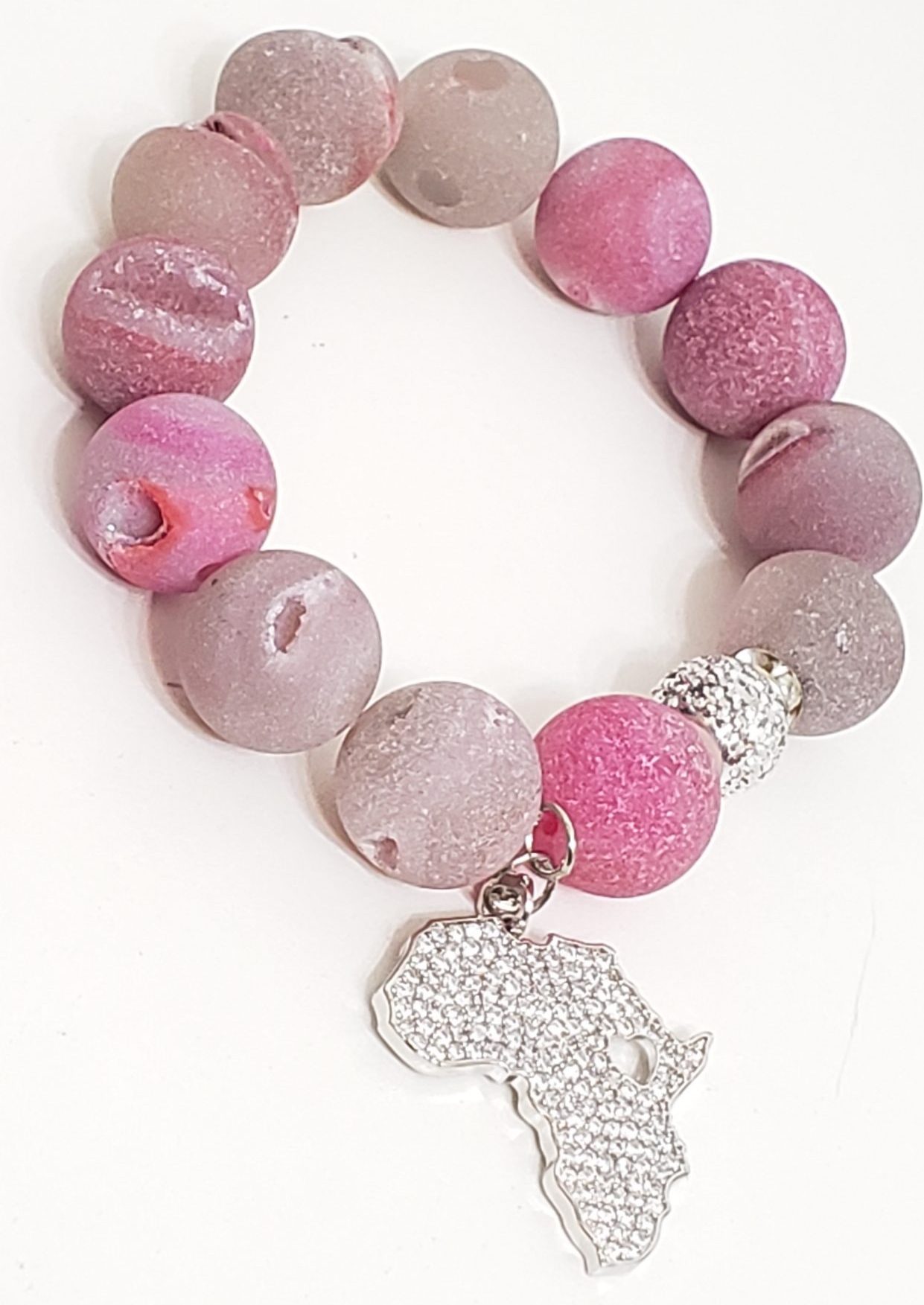 16″ Fuzzy agate with Africa charm stackable bracelet.