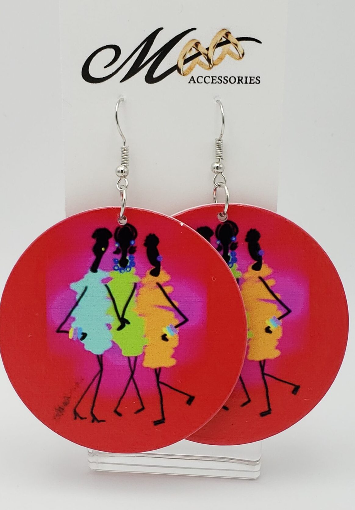 I AM…  Glam wood earrings 2.5 inches long, red color w/ silver plated hooks.