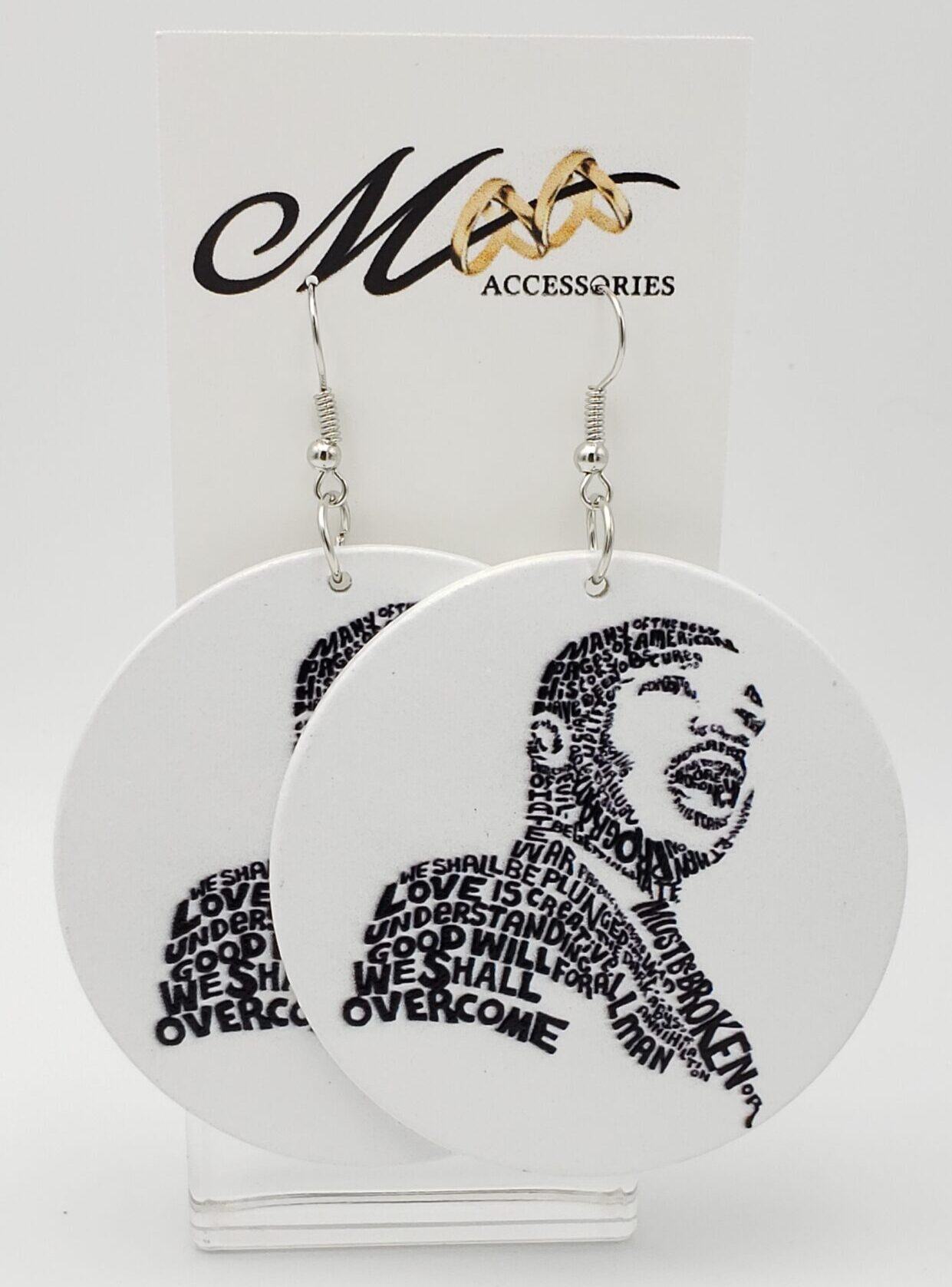 wood earrings 2.5 inches long, w/ silver plated hooks.