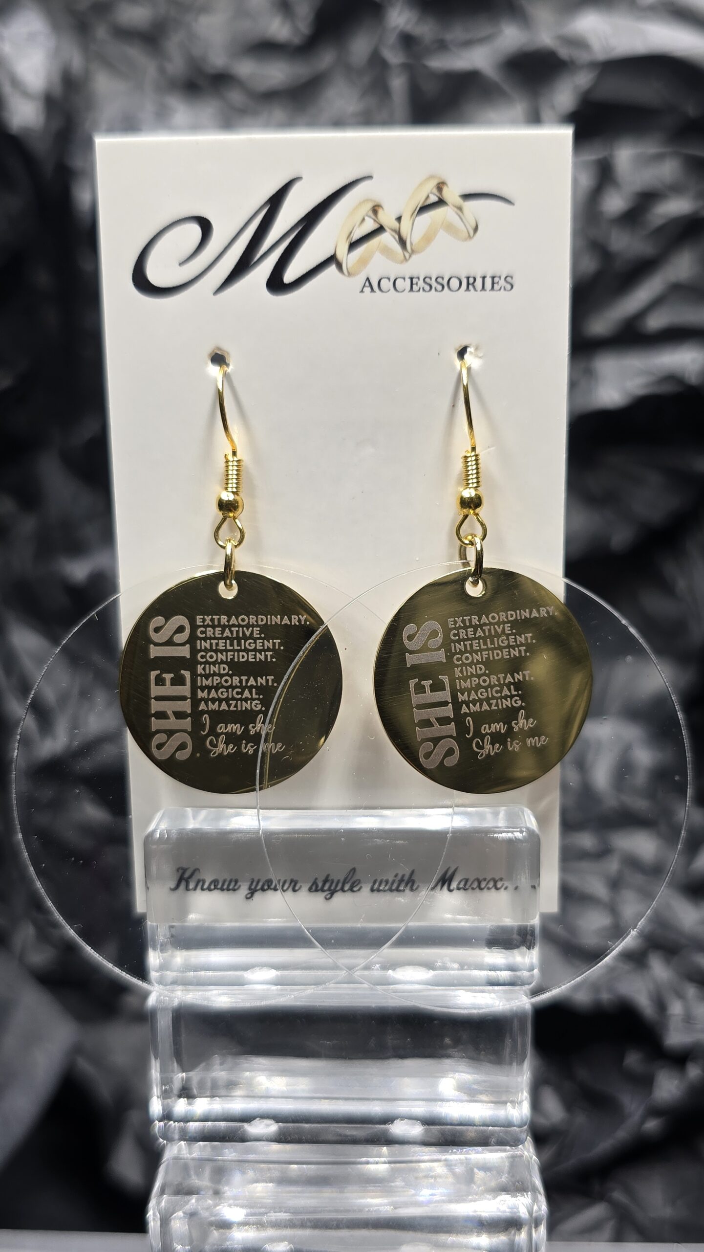 Motivational words of inspiration. I AM… COLLECTION gold pendants on a resin round disk.
