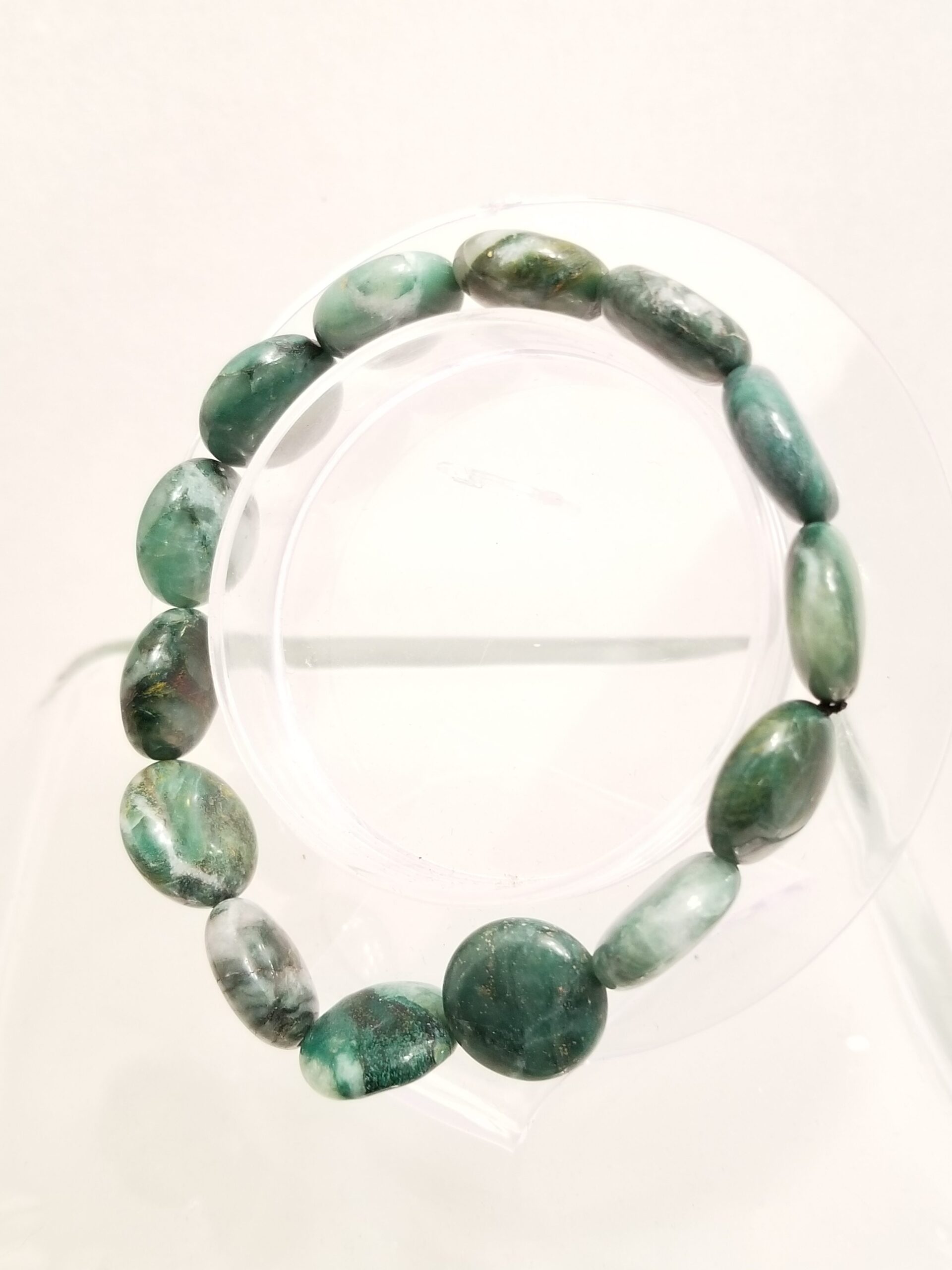 African jade flat disc stretch bracelet.