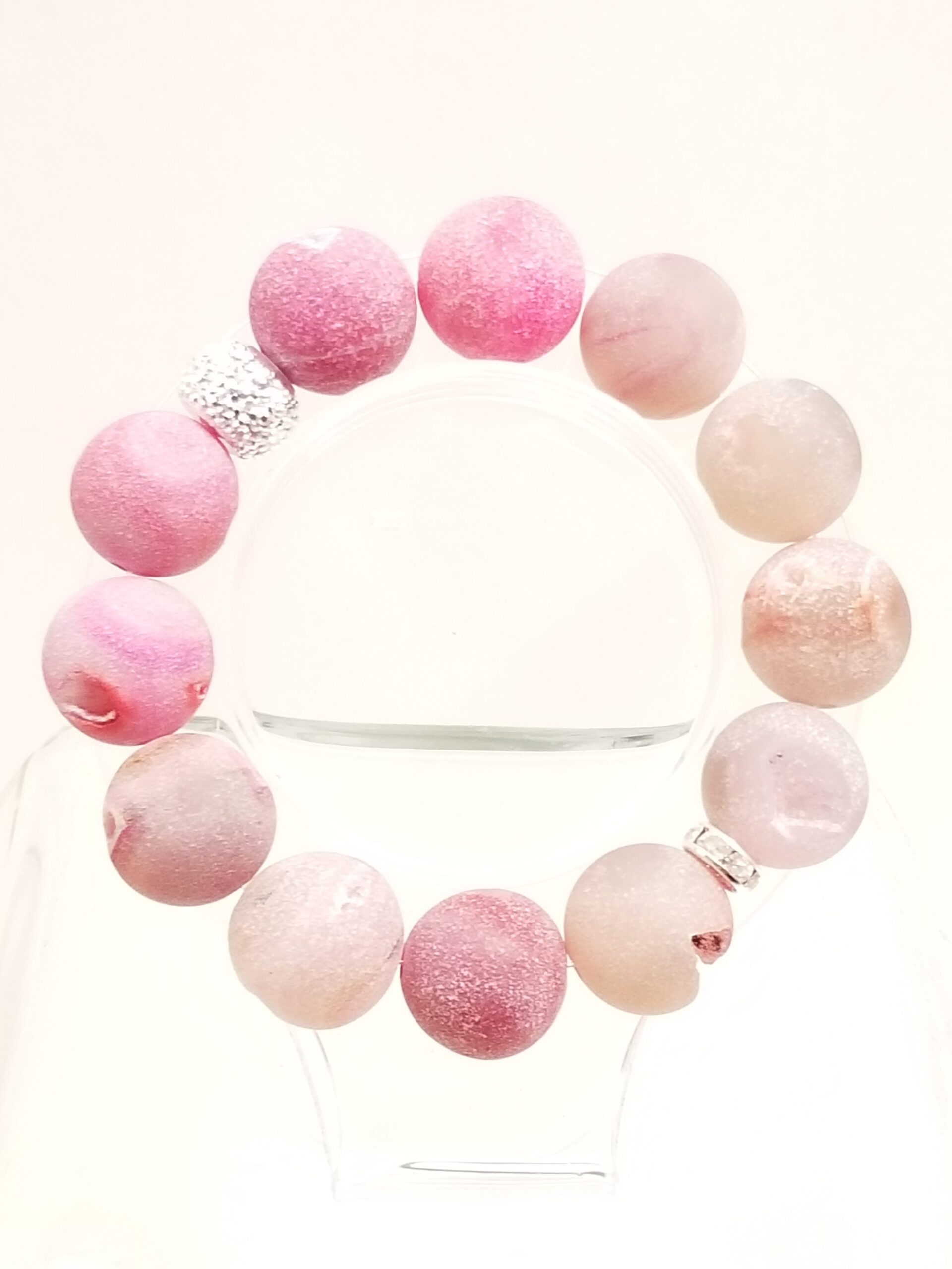 Druzy agate fuchsia pink with charm stretch bracelet.