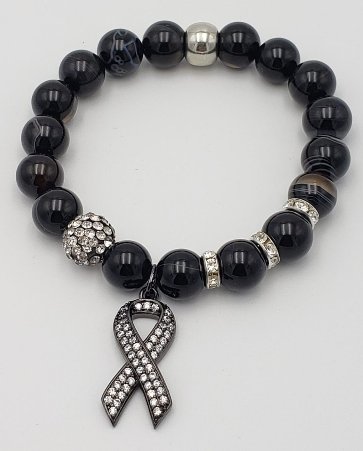 Silver plated spacers with onyx stones… I AM… Cancer Free.
