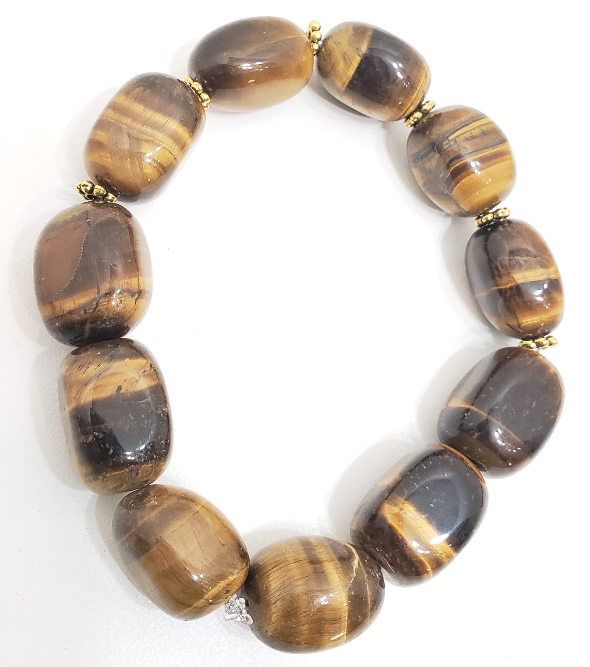 18″ Tiger eye w/ resin beads with gold charm spacers stackable bracelet.