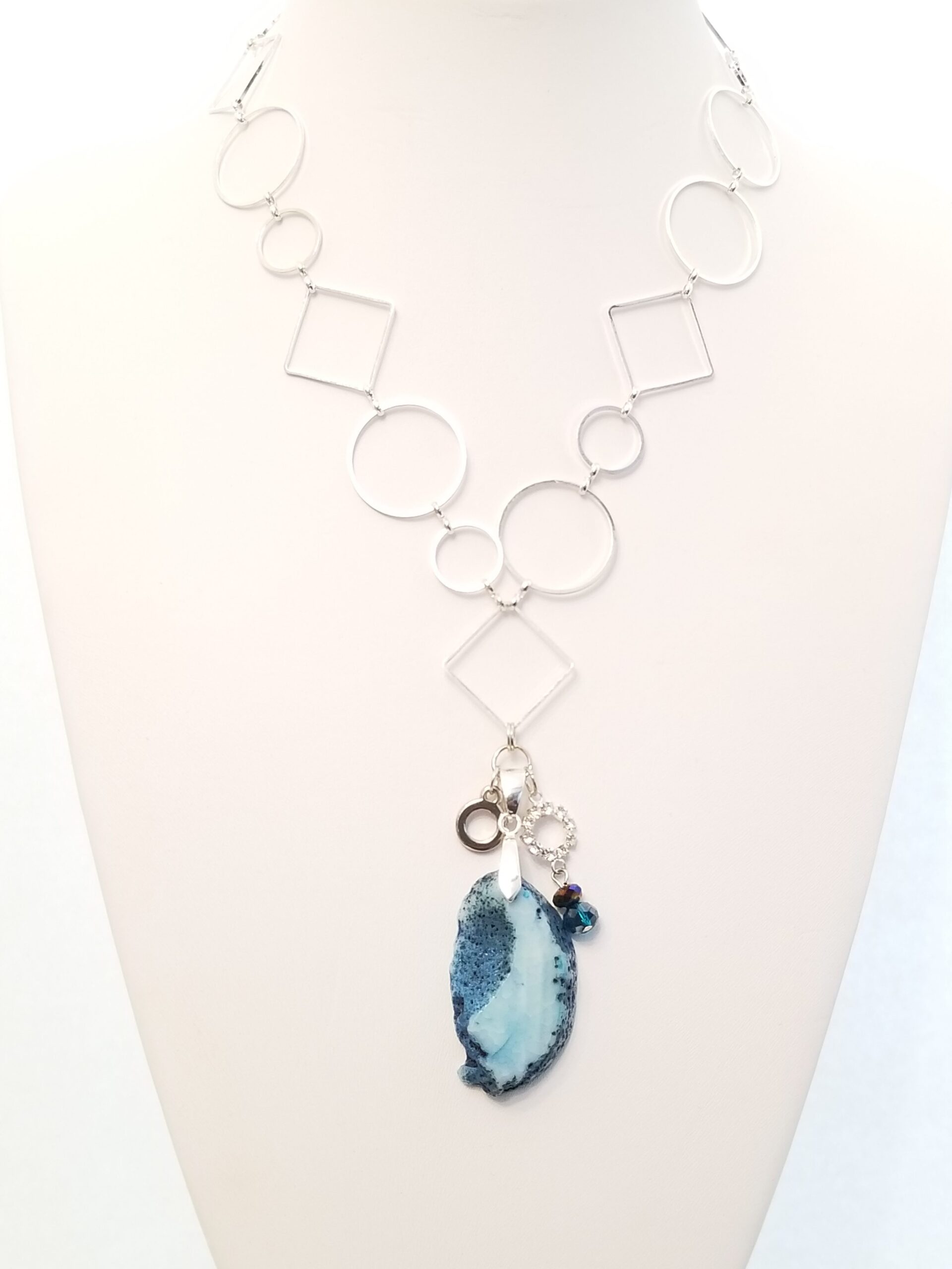 Silver plated metal chain with Amazonite pendant and charms 26″necklace