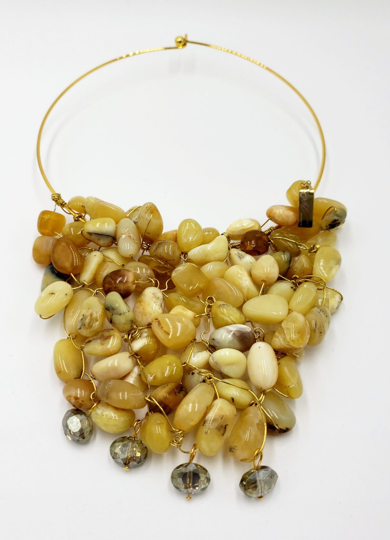 Agate tumble stones intertwined with fired glass stones and gold plated choker.