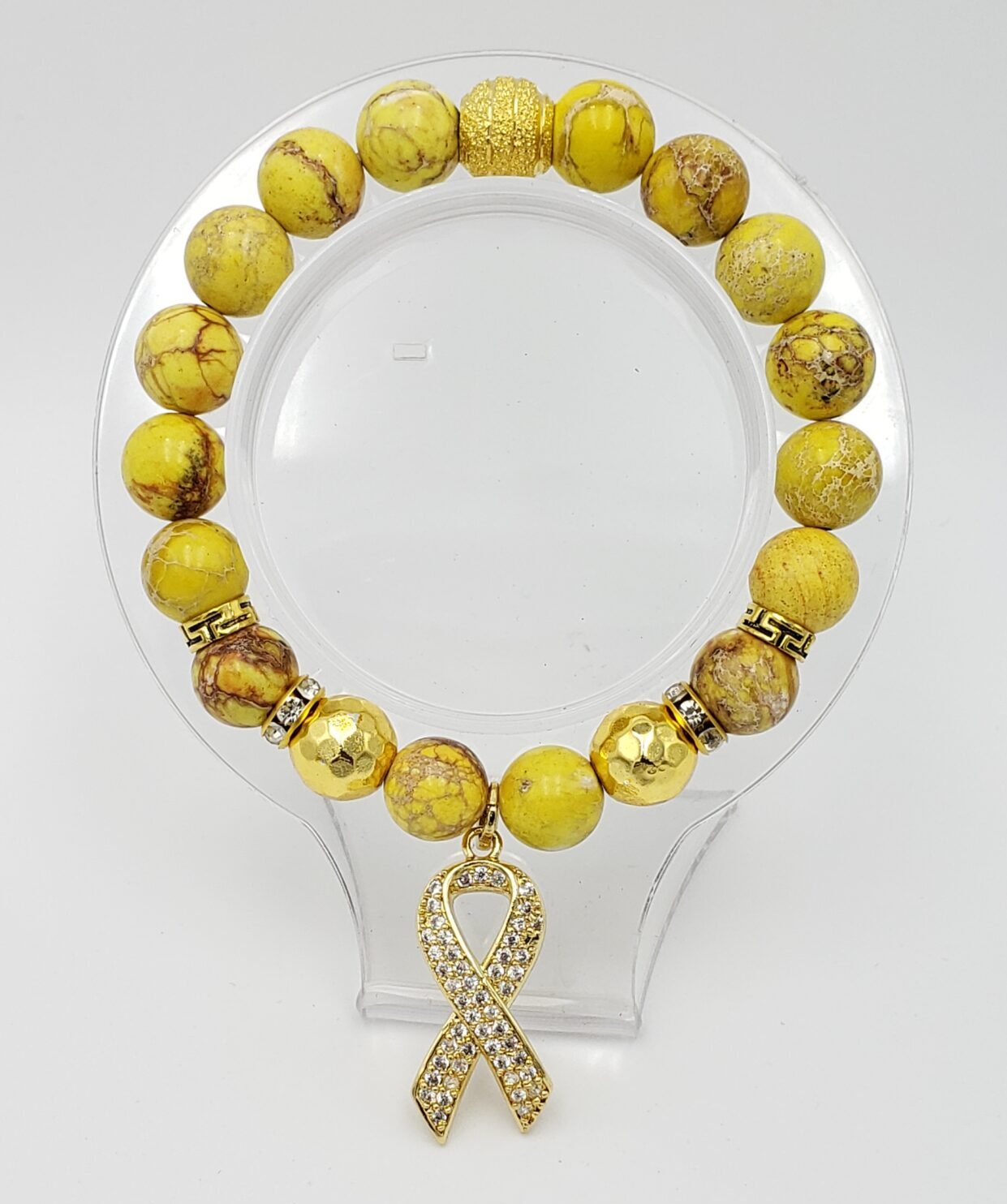 Yellow Sediment Stone with gold plated charms, Cancer.